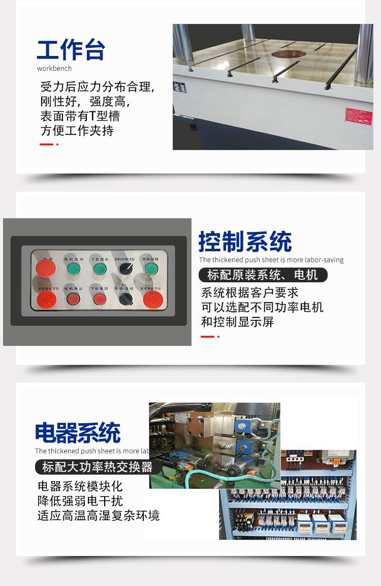 基本原理是油泵把液壓油輸送到集成插裝閥塊,通過各個單向閥和溢流閥把液壓油分配到油缸的上腔或者下腔,在高壓油的作用下,使油缸進行運動.液壓機是 利用液體來傳遞壓力的設備。液體在密閉的容器中傳遞壓力時是遵循帕斯卡定律。四柱液壓機的液壓傳動系統(tǒng)由動力機構、控制機構、執(zhí)行機構、輔助機構和工作介質組成。動力機構通常采用油泵作為動力機構,一般為積式油泵。為了滿足執(zhí)行機構運動速度的要求, 選用一個油泵或多個油泵。低壓(油壓小于2.5MP)用齒輪泵;中壓(油壓小于6.3MP)用葉片泵;高壓(油壓小于32.0MP)用柱塞泵。各種可塑性 材料的壓力加工和成形,如不銹鋼板的擠壓、彎曲、拉深及金屬零件的冷壓成形,同時亦可用于粉末制品、砂輪、膠木、樹脂熱固性制品的壓制。